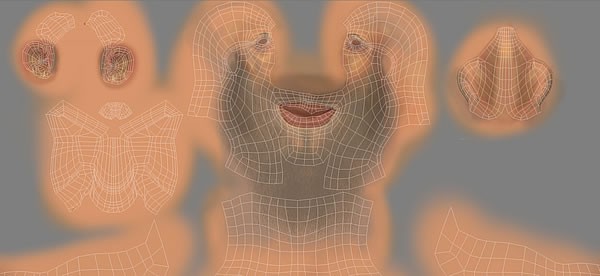 Then the details are drawn. Except for the well-known Photoshop, there are programs which allow drawing the textures right on the surface of 3D model. On the obtained cutout the artist draws skin, adds wrinkles, bristle and other details, trying to achieve the maximal reality. It is not necessary to draw everything by hand, one can also use photos of needed surfaces, laying them over one another.