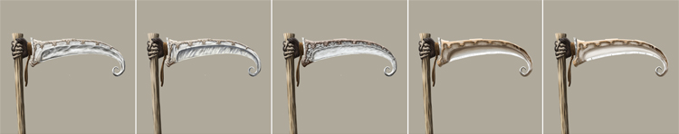 2. Scythe- if you noticed, the scythe’s blade is connected to the shaft not with a heel, but with a bony hand which simulates the hand of Dji.