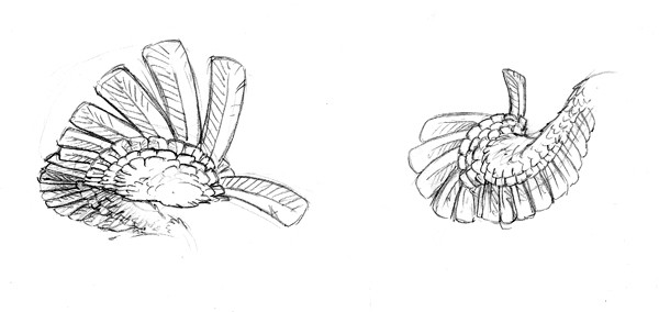Поэтому модель делается сначала без перьев. А перышки высаживаются уже после.