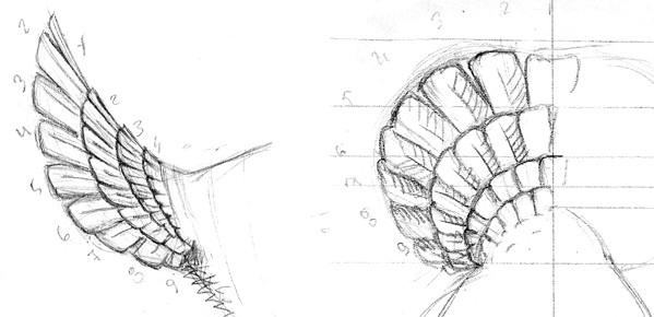 Ну что ж крылья и хвосты есть, пора двигаться дальше. Будем делать рисовать голову. Как говорит Баро: Голова — всему не хвост