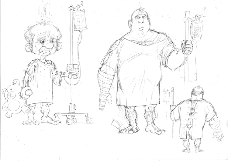 Проработать надо не только фигуры, но и лица персонажей. Приходится рисовать не два и не три варианта, а значительно больше (режиссер привередливый). Много материала остается «за кадром». В итоге, когда выбран самый подходящий персонаж, он разукрашивается. Зачем это делать, если он еще не замоделенный? Разукрашенный 2D-шный персонаж нужен, чтобы понять, какой персонаж будет в итоге. В карандаше это не понятно, и объема нет.