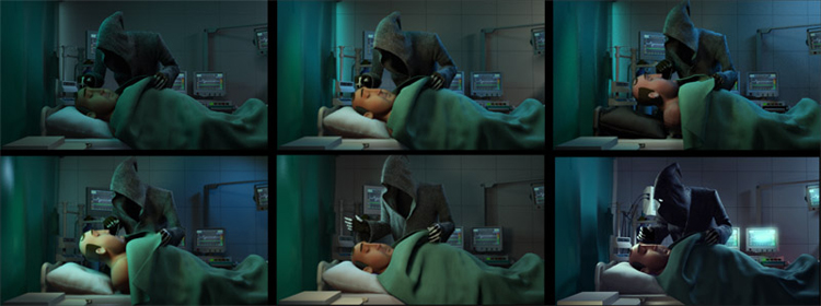 2. Визуализатор повторяет схему освещения и атмосферу как в картинке… и у него ничего не получается. Т.е. получается, но в анимации все выглядит не так круто, как на одном кадре: то косяк какой-то с добавочными источниками света вылезет, то художник не рассчитал корректную схему освещения, поэтому в следующих кадрах, когда камера поворачивается, вся картинка ведет себя непредсказуемо.